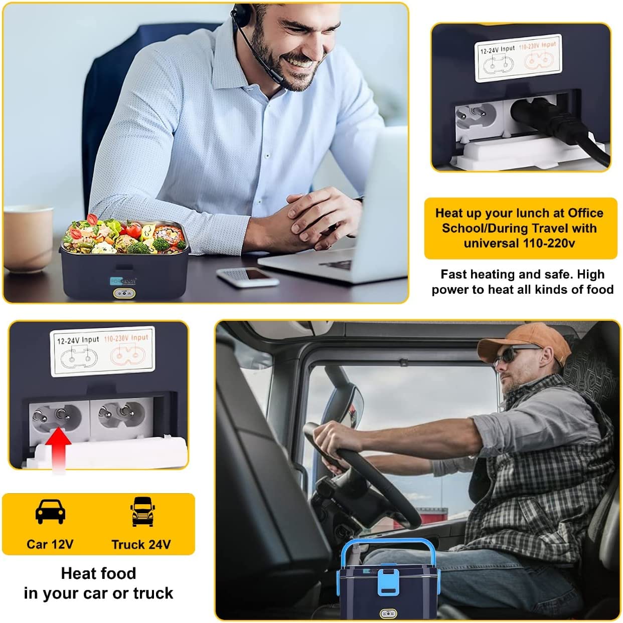 - Healthy Hot Meal Anywhere: FORABEST food warmer for car and truck works with 12/24V for car/truck and universal 110/220V for home/office Worldwide (wall adaptor may be required abroad). The heated lunch box comes with a stainless steel container, large size spoon and fork and high quality sealing ring. The perfect truck driver gift!